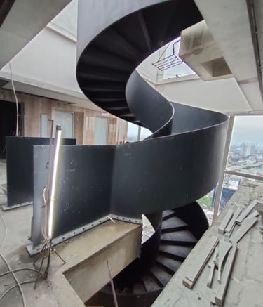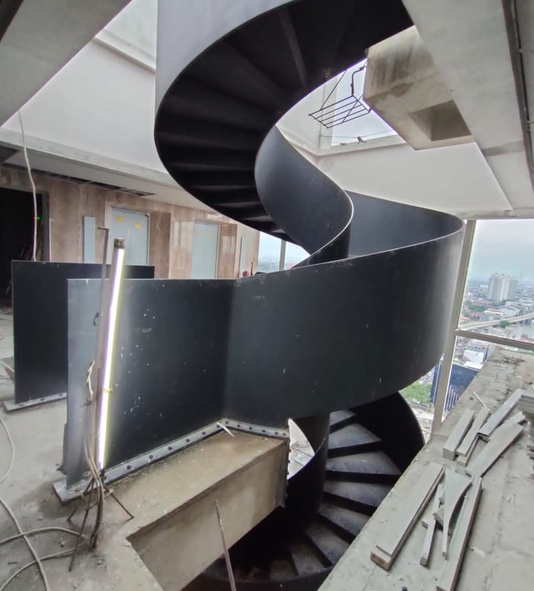Kami adalah tim spesialis dalam pembuatan tangga spiral yang elegan untuk kantor, hotel, dan juga rumah pribadi. Kami berkomitmen untuk memberikan solusi desain yang kreatif dan inovatif, menciptakan tangga yang tidak hanya fungsional tetapi juga menjadi karya seni yang menyatu dengan arsitektur ruangan.